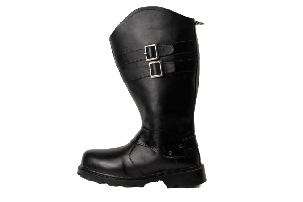 Detail Sepatu cementing model slip on untuk penunggang (rider) dari kulit motif glossy xtra belt